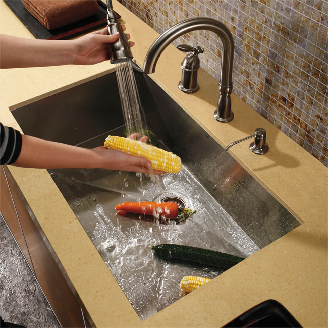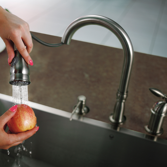 Update the look of your kitchen with this stylish, durable kitchen faucet