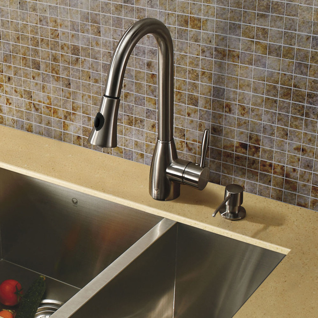 Purchase a VIGO pull-out kitchen faucet for optimal spout reach and height.
