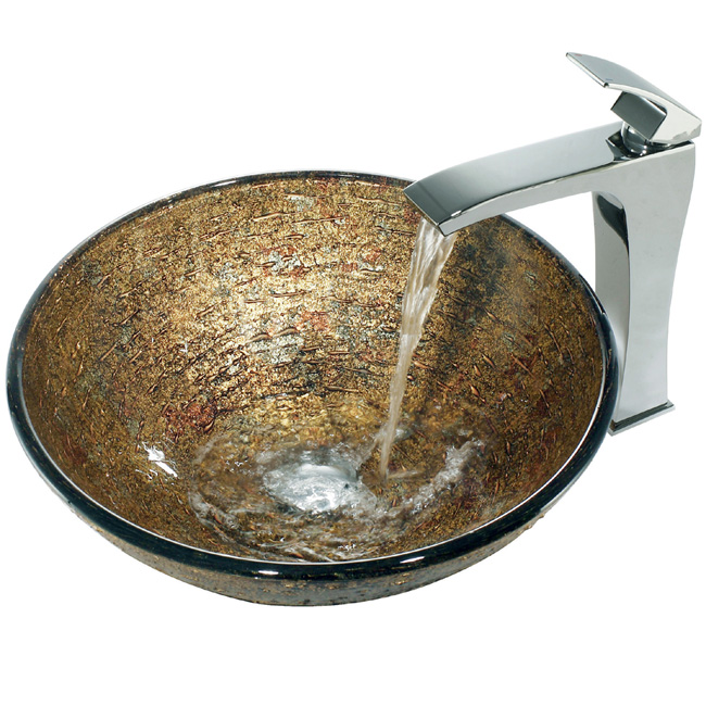 The VG07025 glass vessel bowl features an elaborate