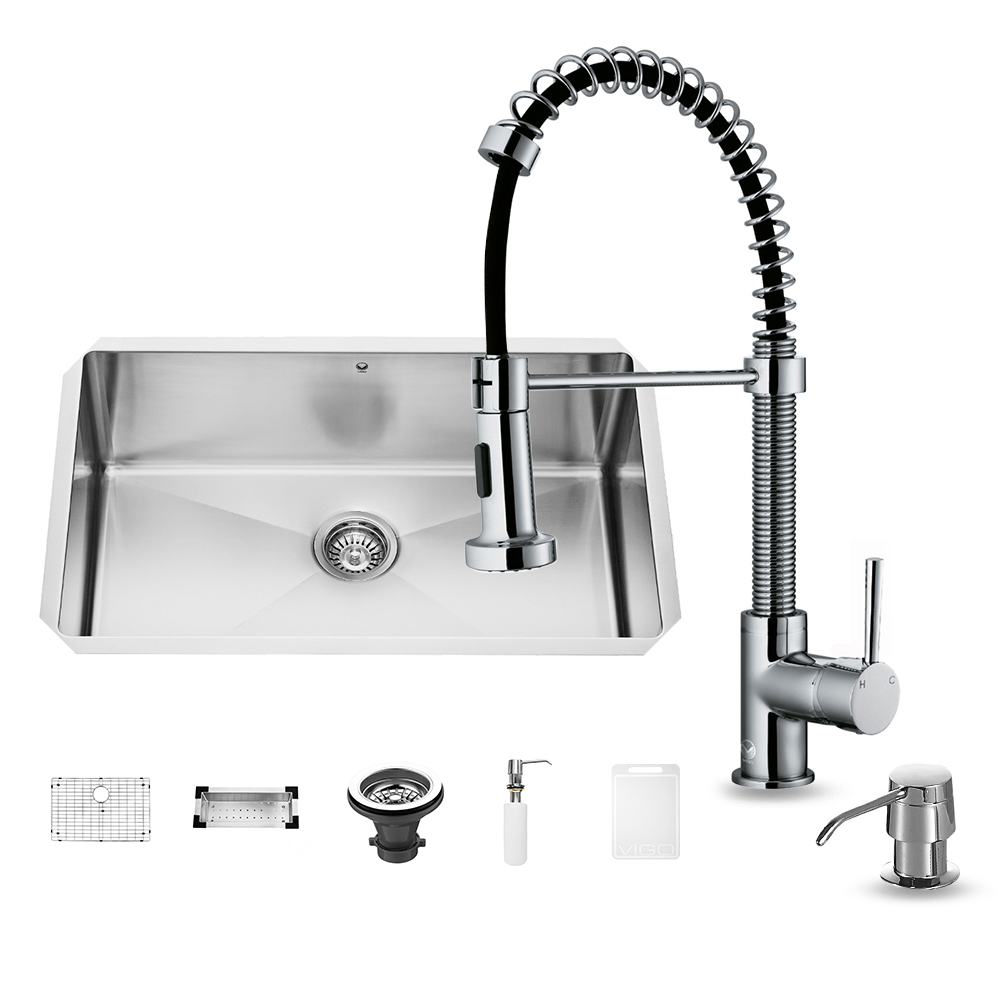 The VGSTRAINER Sink Strainer is made of durable solid brass in Chrome finish The VGGA0819 Kitchen Sink Colander in Satin finish is manufactured with 18-gauge premium 304 Series stainless steel with vinyl corner protectors The VGSD001CH Soap Dispenser is solid brass with a Chrome finish and fits 1.5-in. opening with a 3.5-in. spout projection The VGG2716 Matching Bottom Grid is Chrome-plated stainless steel with vinyl feet and protective bumpers