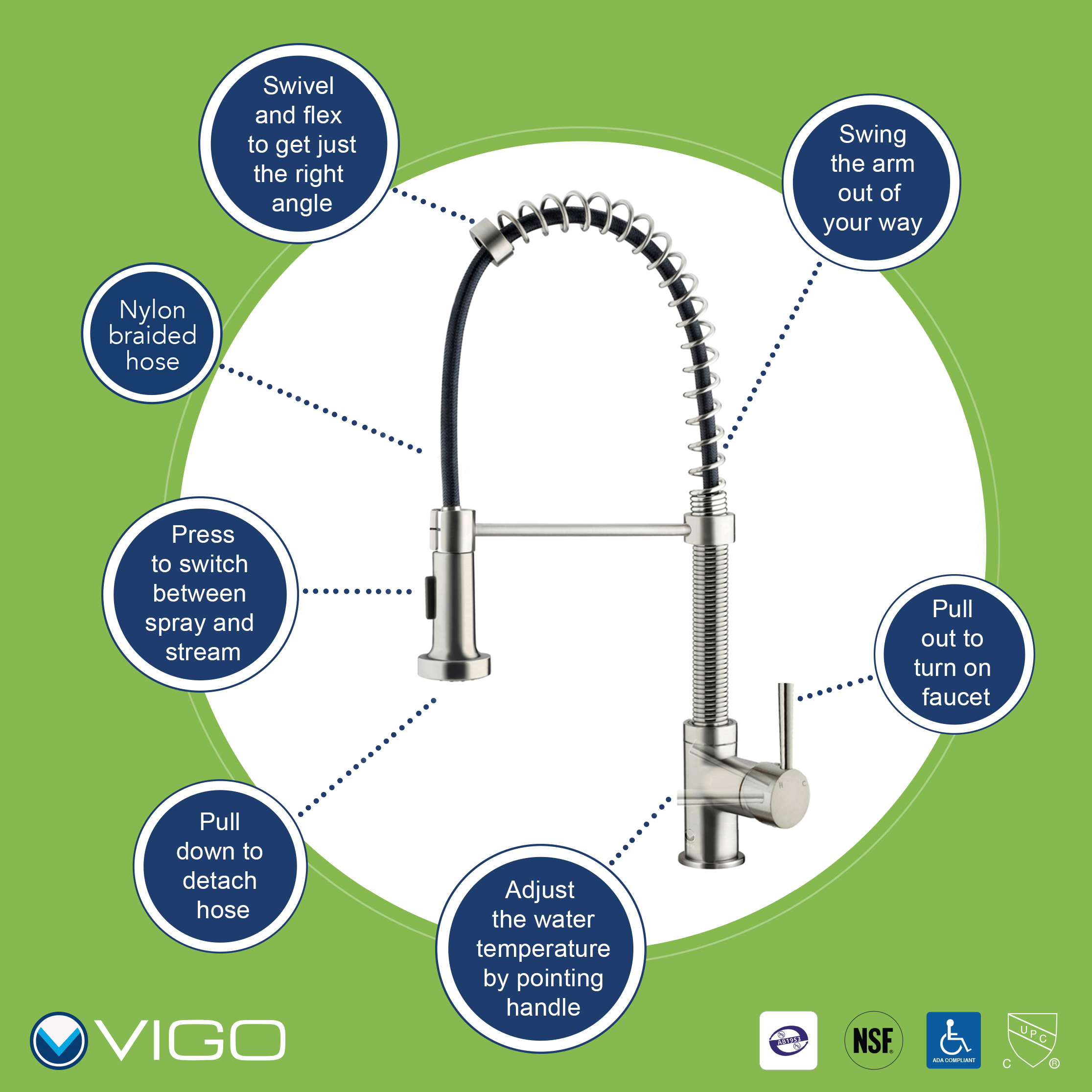 The VG02001ST Edison Kitchen Faucet constructed from solid brass with Stainless Steel finish which ensures durability and longer life