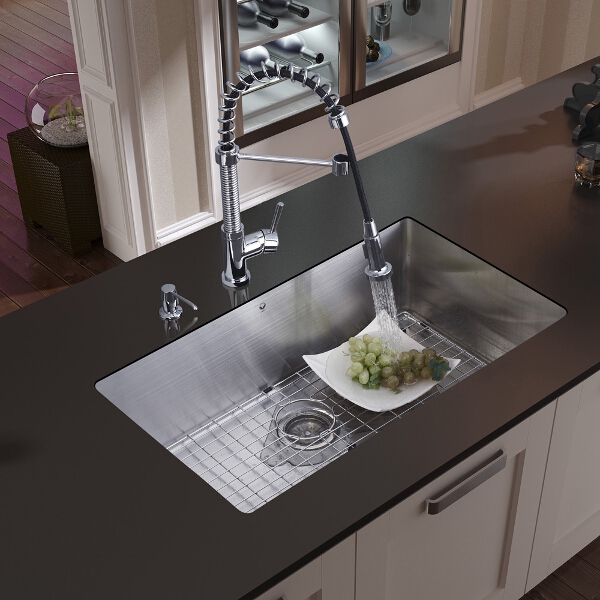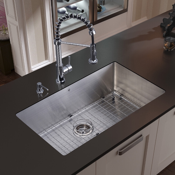 This set includes stainless steel kitchen sink, chrome kitchen faucet, matching grid,