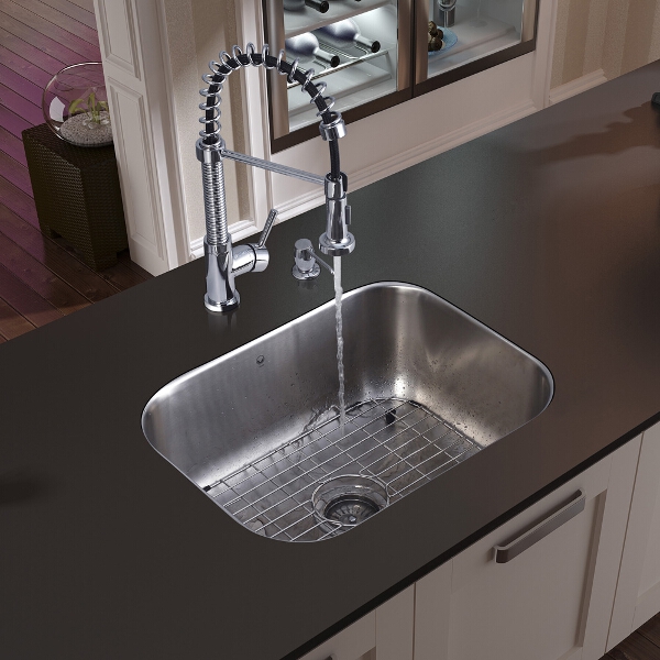 This set includes stainless steel kitchen sink, chrome kitchen faucet,