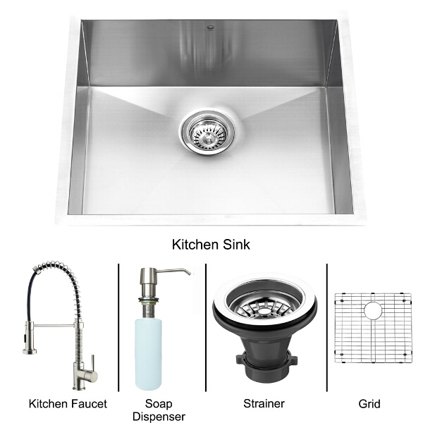 This set includes stainless steel kitchen sink, stainless steel kitchen faucet, matching grid,