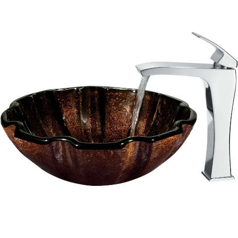 This VIGO Walnut Shell glass vessel sink and faucet set brings a modern balanced light to your home.