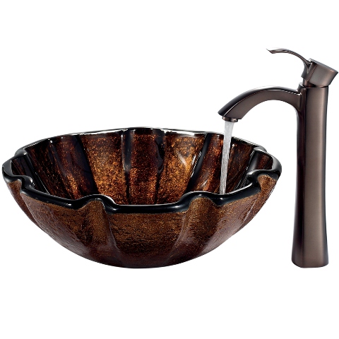 The VIGO Walnut Shell glass vessel sink and faucet set is stylish, warm and inviting.