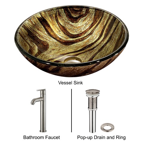 The VG07034 glass vessel bowl features a pale golden color with brown stripes and swirls.