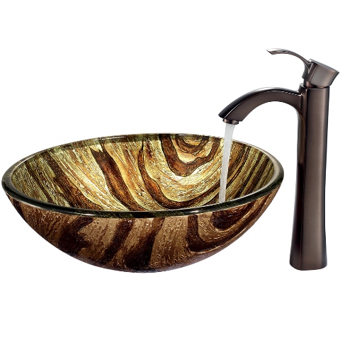 The VIGO Zebra glass vessel sink and faucet set is striking, yet warm and cozy.